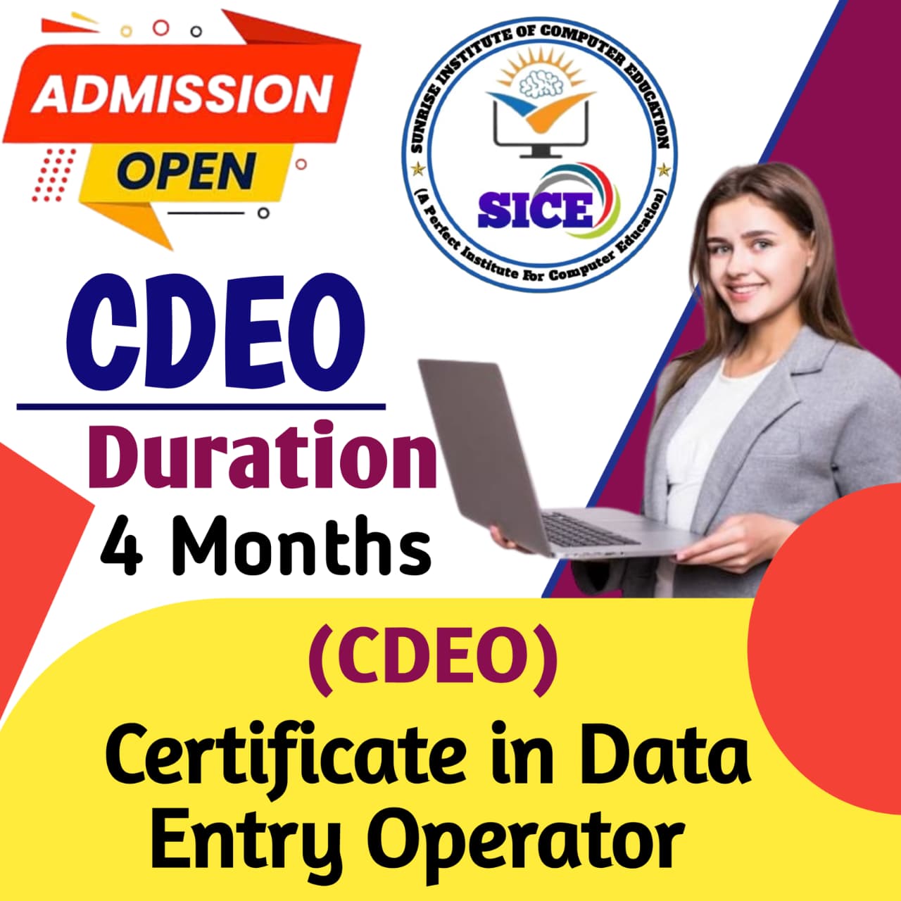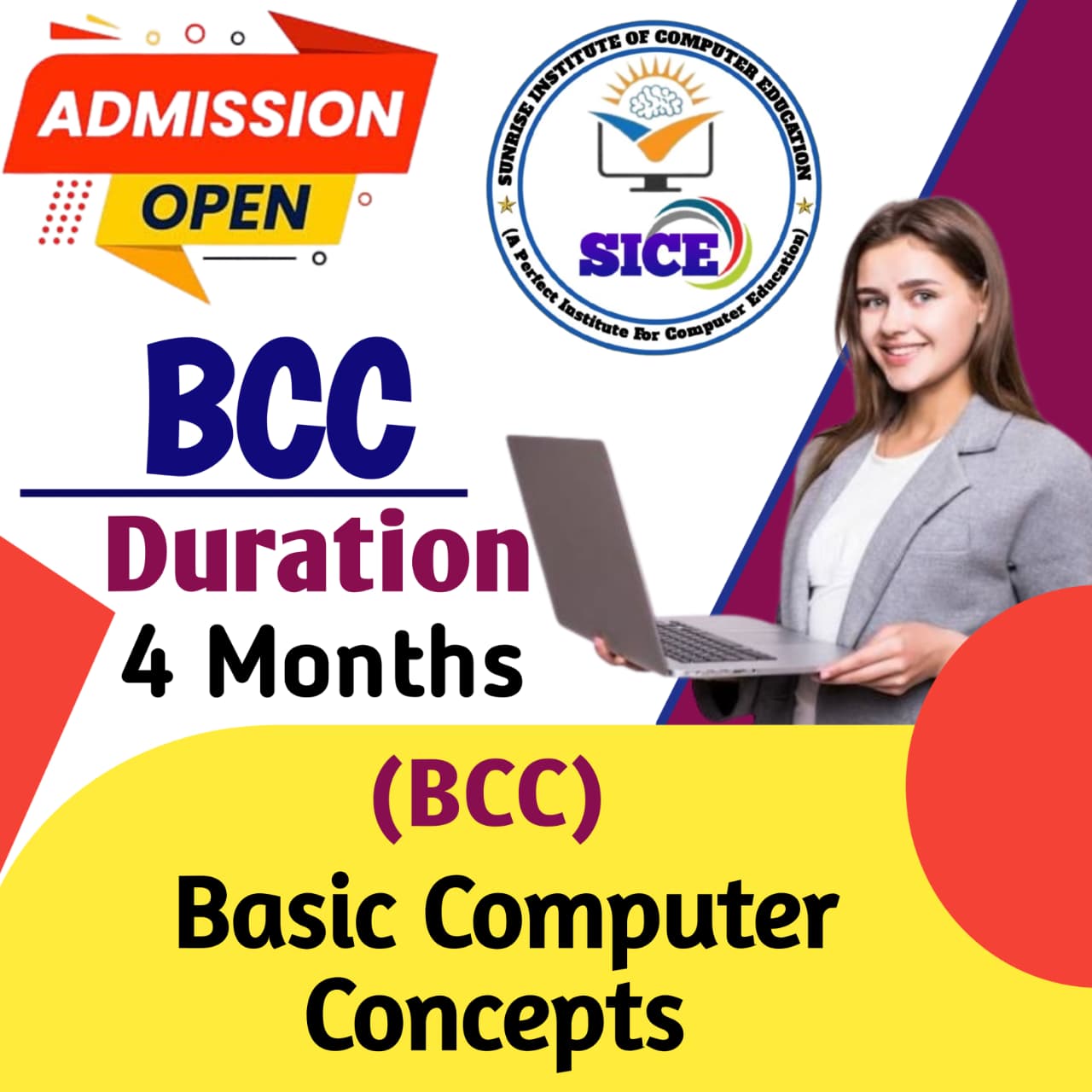 Welcome to Sunrise Institute of Computer Education, a premier computer coaching institute dedicated to empowering students with essential digital skills. Our mission is to provide high-quality education in computer literacy, programming, software applications, and advanced IT concepts. Whether you are a beginner or looking to enhance your expertise, our well-structured courses, experienced faculty, and hands-on training ensure a comprehensive learning experience.